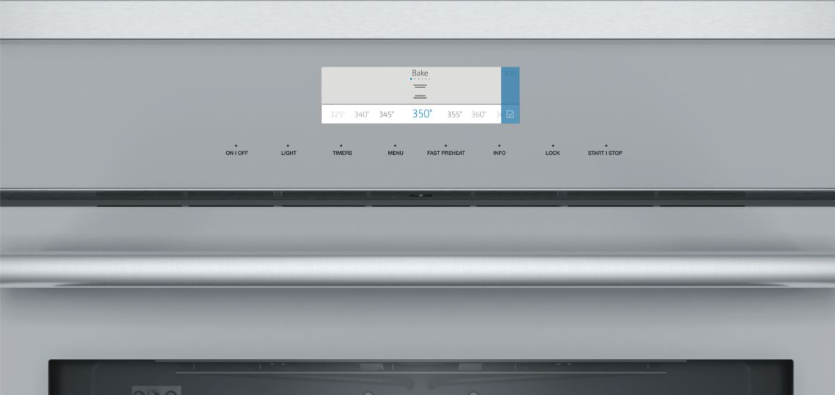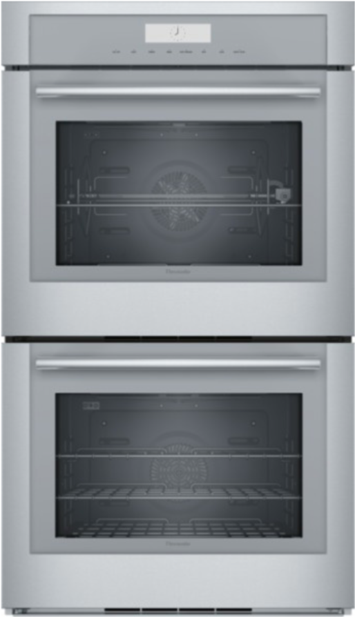 Thermador Connected Experience with Home ConnectTM • TFT Touch control display • Silver glass onstainless steel • SoftCloseTM doors • Upper Oven features: 16 Cooking modes: True Convection, SpeedConvection, Rotisserie, Max Broil, Bake, Broil, Roast, Convection Bake, Convection Broil, Max ConvectionBroil, Convection Roast, Proof, Warm, Pizza, Dehydrate, Slow Roast • Commercial-style rotisserie with12-pound capacity • Two-hour self clean • Three Full Access® telescopic rack • Multi-point meat probe